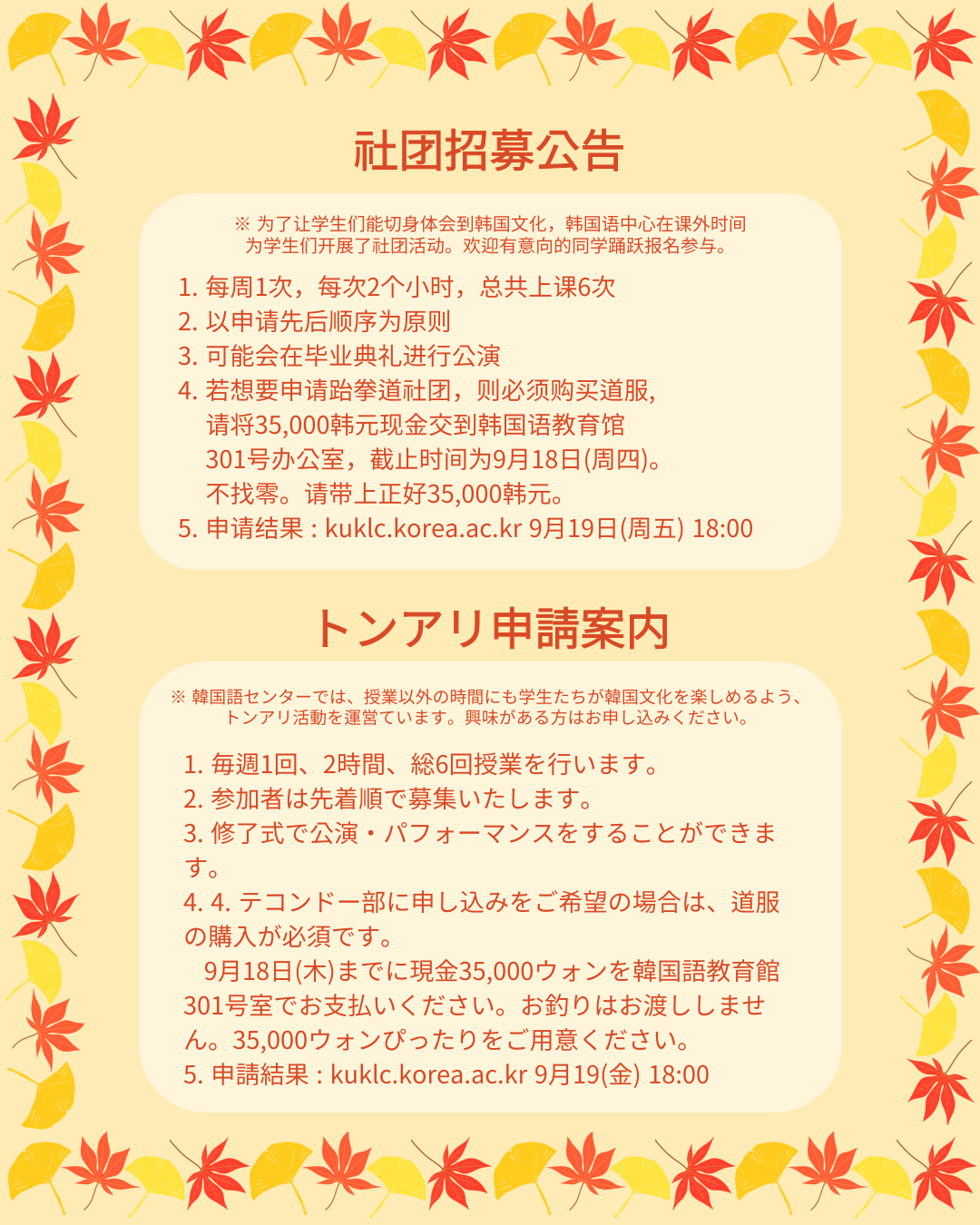 ★신청기간 : 9월 15일 월요일 00:00am ~ 9월 19일 금요일 12:00pm★