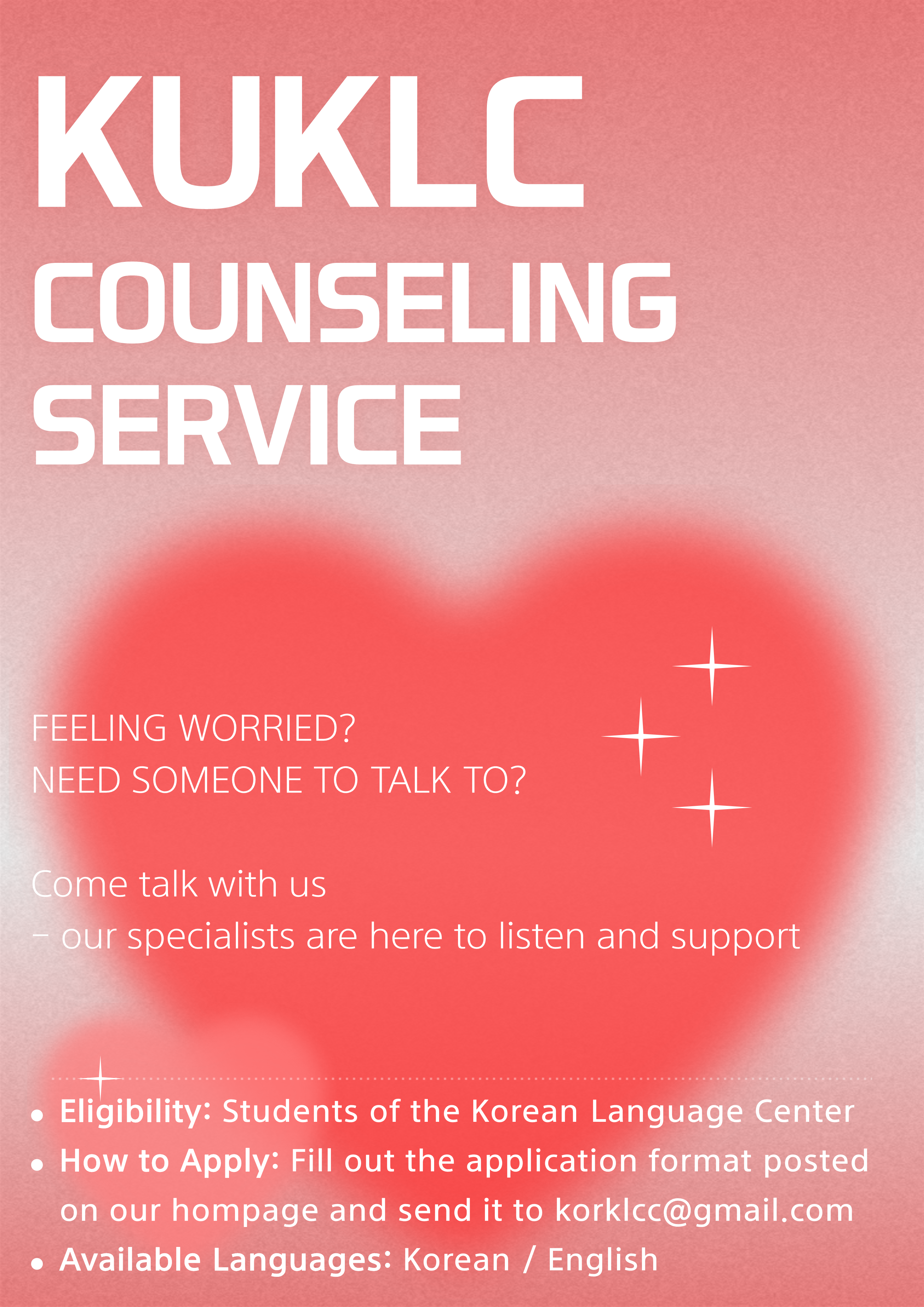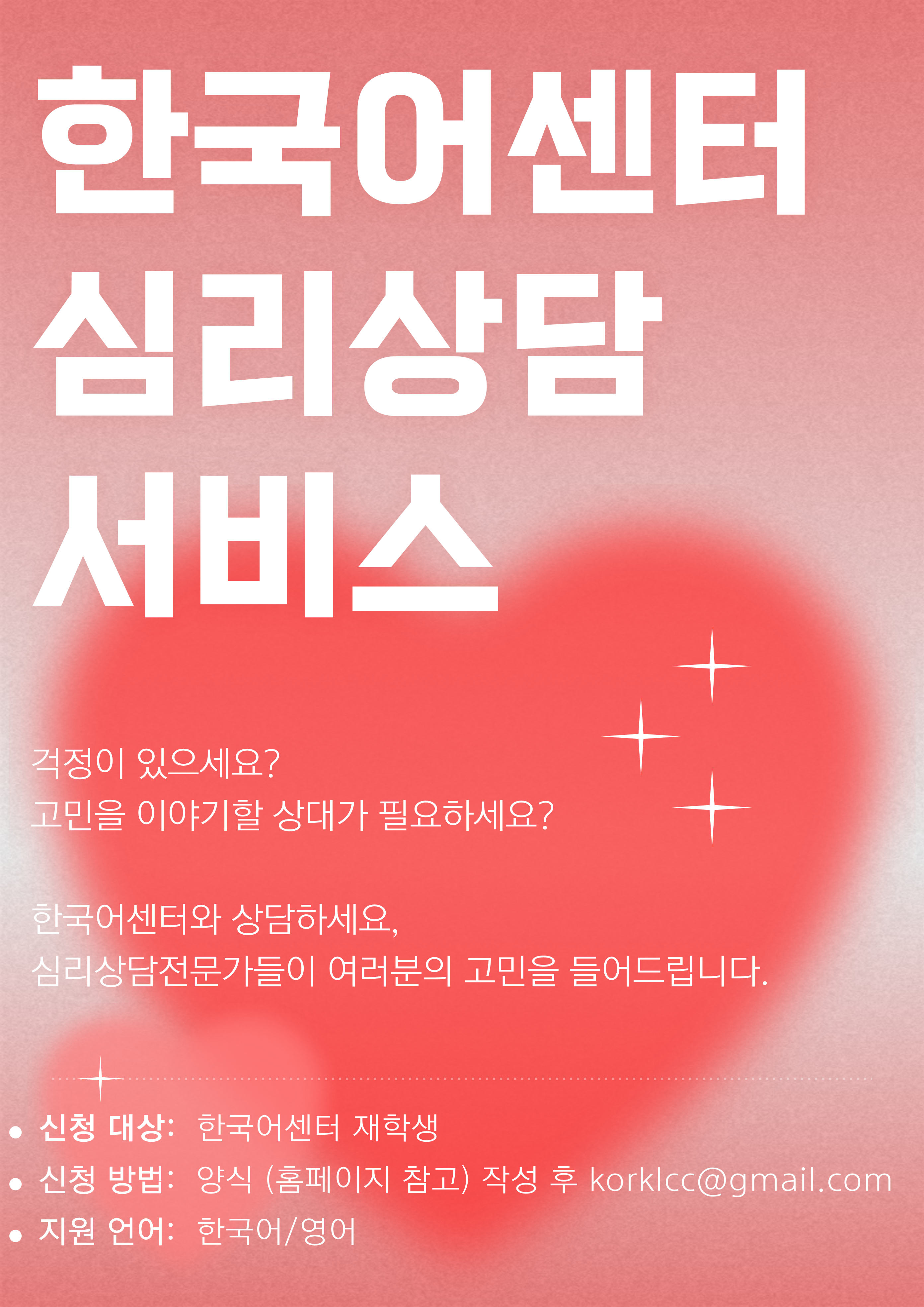 If you ever feel troubled, stressed, or in need of problem-solving while studying at the Korean Language Center, we encourage you to make use of this program.